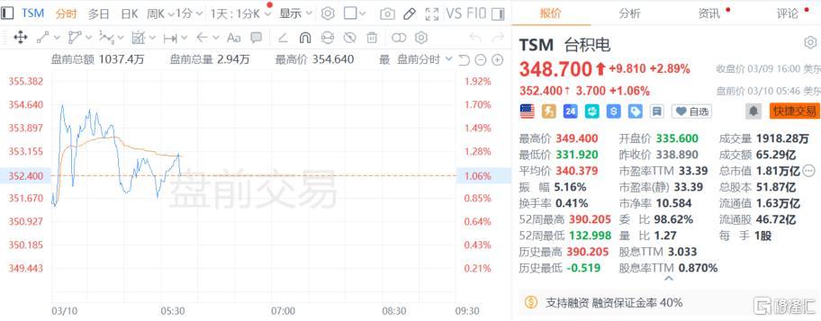 二级市场上,台积电美股盘前交易上涨超1%,今年以来股价累涨近15%。