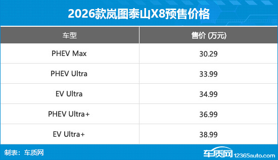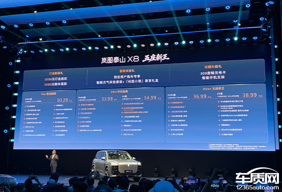 4月22日,岚图泰山X8正式开启预售。新车共推出5款配置车型,预售价为30.29-38.99万元。此外,官方还推出多项订车权益。作为一款中大型SUV,其将提供插电混动与纯电两种动力形式,并配备多激光雷达融合方案及华为最新一代智能座舱。