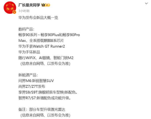 【CNMO科技消息】3月16日股票配资股票,数码博主“厂长是关同学”整理了3月23日举办的华为春季全场景新品发布会发布新品的大致信息,具体信息如下: